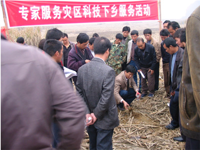 永乐乡拥有甘蔗 49亩,是融水县甘蔗种植大乡,在年初的冰雪灾害中53 %以上的甘蔗受灾。甘蔗灾后的管理技术是蔗农当务之急。活动当天,永乐乡政府迅速组织来自永乐乡8个村的蔗农以及乡干部近百人在永乐乡政府参加了专家培训讲座,随后专家又带农民到田间作现场答疑和技术指导,帮助农民解决甘蔗冰冻灾后生产自救的技术问题。王教授说:“甘蔗还有3到5片青叶,留种不成问题,只要注意防病和施足基肥,不影响今年甘蔗的种植和产量”,给在场的农民吃了定心丸。