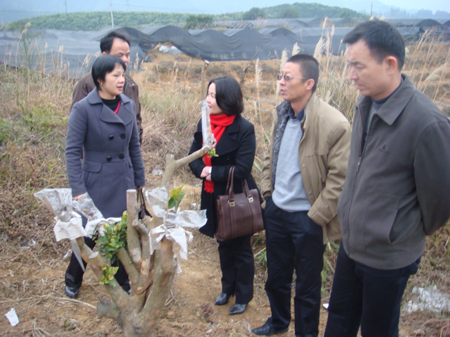 柳州市科技局孙松书记一行在三江县斗江镇实地查看油茶新品种品比试验情况