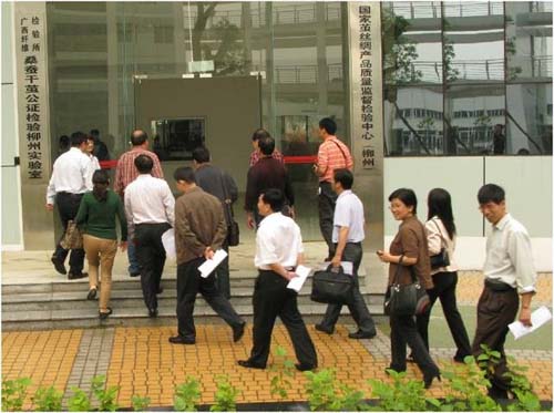 参观国家茧丝绸产品质量监督检验中心(柳州)