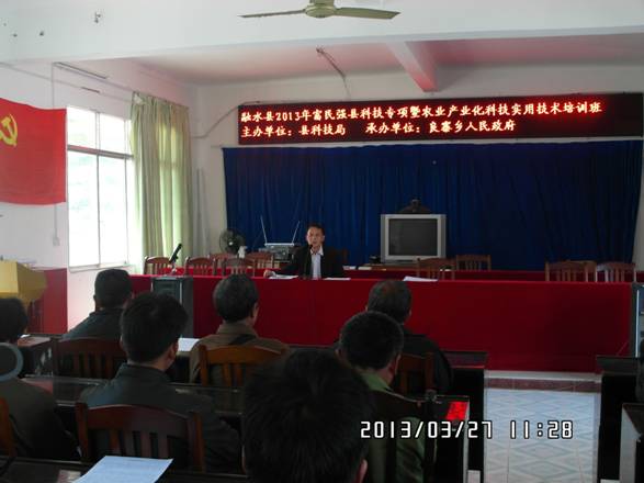 3月27-29日,在融江片的大年、良寨、红水、大浪举办了4期农民科技实用技术培训,拉开了今年大规模培训的序幕。此次培训内容有杉木速生丰产栽培技术、油茶低产改造技术、茶叶新植技术,林下养殖技术等,共有378户种养户参加了培训。