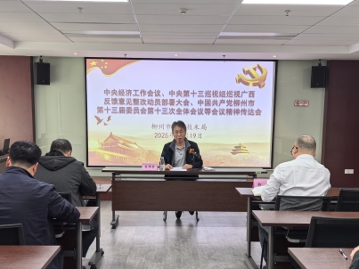 近日,柳州市科学技术局召开专题会议,集中传达学习中央经济工作会议、中央第十三巡视组巡视广西反馈意见整改动员部署大会以及中国共产党柳州市第十三届委员会第十三次全体会议精神,研究部署贯彻落实工作。柳州市科学技术局党组书记、局长管伟荣主持召开会议。