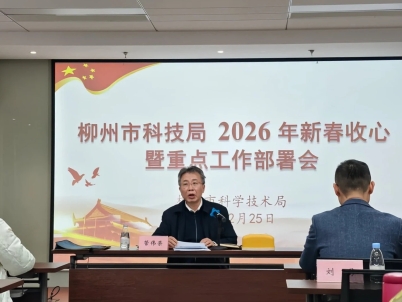 2月25日,市科技局组织召开2026年新春收心暨重点工作部署会,传达学习2026年自治区新春第一会、自治区十四届人民政府第四次廉政工作会议及柳州新春第一会等重要会议精神,动员全局上下迅速收心归位、凝心聚力,以“开局即决战、起步即冲刺”的姿态,奋力推动全市科技创新工作开好局、起好步。市科技局党组书记、局长管伟荣主持会议并讲话。